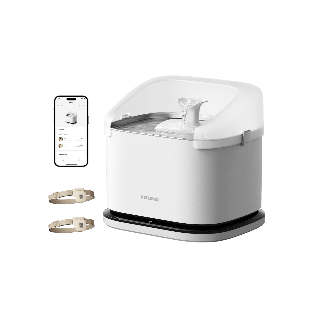 App-powered fountain with RFID recognition for accurate multi-cat hydration tracking. Supports up to 5 cats, tracking drinking amount, duration, and frequency. Smart app sends real-time alerts including for hydration insights, low water levels, or Wi-Fi disconnections. 4-layer filtration ensures 24/7 clean water.